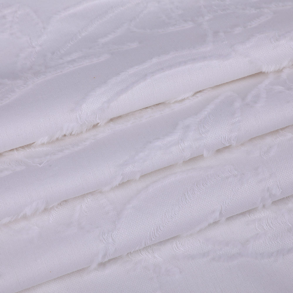 Jacquard Trim Thread Through Luxury Lady Sytred Flugy ، المخلوطة مع 90 ٪ من القطن عالي الجودة و 10 ٪ من الحرير الناعم. تم تصميم هذه النسبة الفريدة لتحسين أداء النسيج ، وضمان قابلية التنفس الجيدة وامتصاص الرطوبة ، ومنح النسيج لمسة فاخرة فريدة. في تصميم النسيج ، نستخدم عملية جاكار حافة جيدة ودمج أنماط معقدة بذكاء في النسيج من خلال المهارات اليدوية. لا يعزز هذا التصميم التأثير البصري للنسيج فحسب ، بل يمنحه أيضًا قيمة فنية فريدة من نوعها وأهمية جمالية. في الوقت نفسه ، يجعل استخدام الهيكل المحبوك أن القماش له مرونة جيدة واستعادة ، والتي يمكن أن تتناسب تمامًا مع شكل الجسم وتلبية احتياجات النساء المزدوجة للراحة والجمال. من حيث الأداء ، يعمل هذا النسيج بشكل جيد. إن إضافة ألياف القطن تجعل النسيج يتمتع بامتصاص الرطوبة الجيد وأداء العرق ، والذي يمكن أن يبقي الجلد جافًا ومريحًا حتى في البيئات ذات درجة الحرارة العالية. يضيف اللمعان الحساس للحرير لمسة من الأناقة والرفاهية للنسيج ويعزز الملمس الكلي. بالإضافة إلى ذلك ، يحتوي النسيج أيضًا على مقاومة جيدة للارتداء ومقاومة التجاعيد ، والتي يمكن أن تصمد أمام اختبار التآكل اليومي والغسيل ، والحفاظ على بريق وملمس النسيج الأصلي.