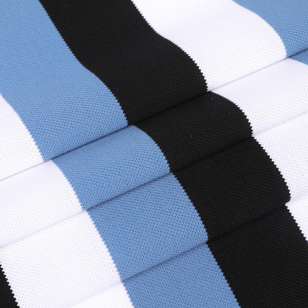يضمن القطن الجزيري ، بأليافه الطويلة ، وقوتها العالية ، واللمعان الجيد ، النعومة والراحة والمتانة للنسيج. من خلال علاج الأمونيا السائل ، يحسن النسيج قابلية أنفاسه ومرونته مع الحفاظ على خصائصه الأصلية ، وإزالة الشوائب بشكل فعال ، مما يحسن النقاء والجودة الشاملة للنسيج. فيما يتعلق بالتصميم ، اخترنا هيكلًا لشبكة اللؤلؤ ، والذي يشكل شبكة موزعة موزعة من خلال عملية نسج فريدة ، مما يعزز بشكل كبير من قابلية النسيج ، بحيث يمكن أن يظل قميص البولو منعشًا حتى في الصيف الحار. في الوقت نفسه ، يضيف دمج العناصر المخططة إحساسًا بالأزياء إلى قميص البولو ، مما يجعله مناسبًا ليس فقط للمناسبات التجارية ولكن أيضًا لوقت الفراغ. فيما يتعلق بتكنولوجيا الإنتاج ، فإننا نولي اهتمامًا لمعالجة كل التفاصيل. يتم قطع النسيج بدقة لضمان نسخة واضحة وخطوط ناعمة. بالإضافة إلى ذلك ، نتحكم بدقة في كل رابط في عملية الإنتاج لضمان الأداء البيئي للمنتج وتقليل التأثير على البيئة من المصدر.